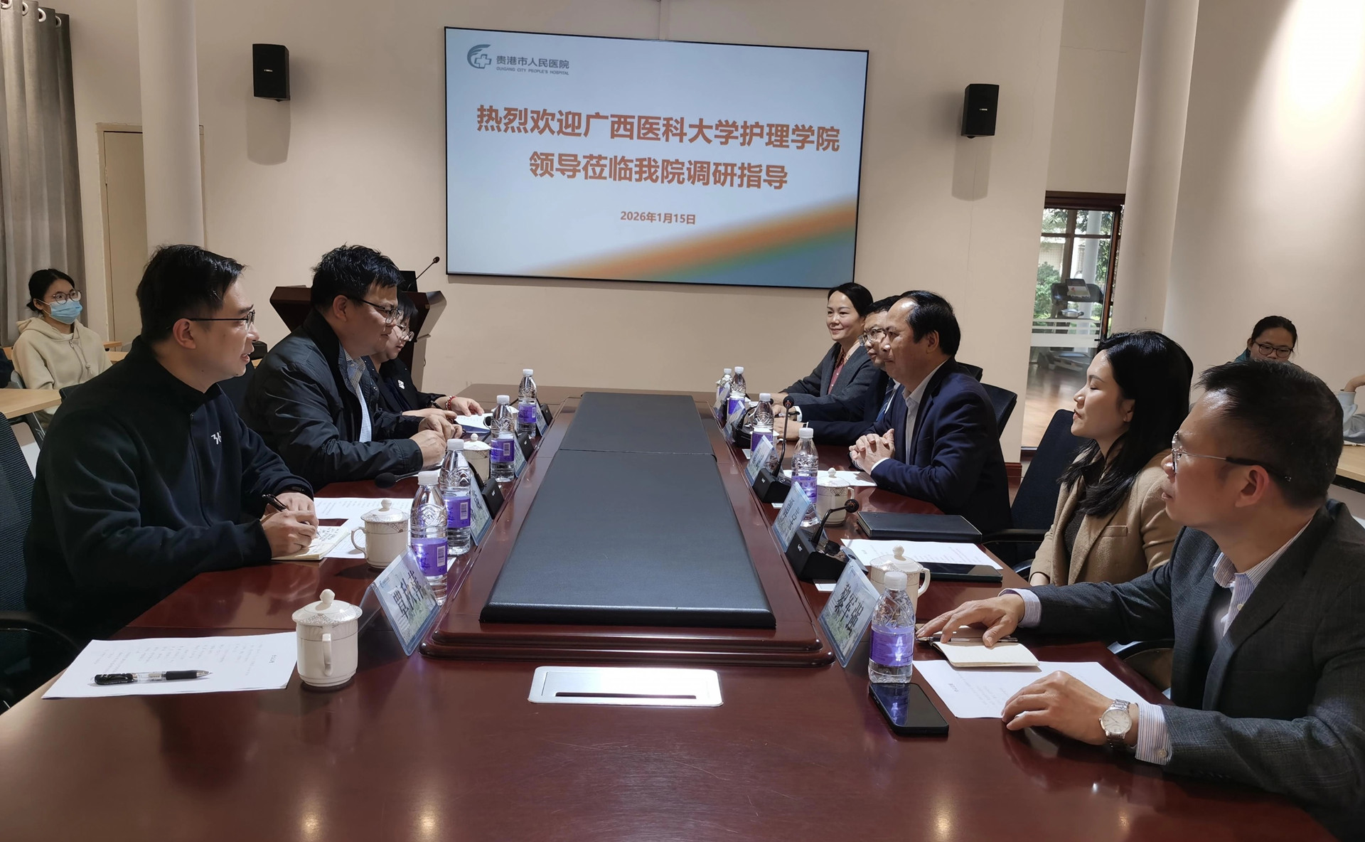 为精准对接用人单位需求,拓展毕业生就业渠道,1月15日至16日,公司党委书记谭机永、副经理刘媛航率毕业班辅导员一行,前往贵港市人民医院、贵港市东晖医院及平南同安骨科医院开展“访企拓岗”专项行动,并与各单位负责人开展座谈交流。